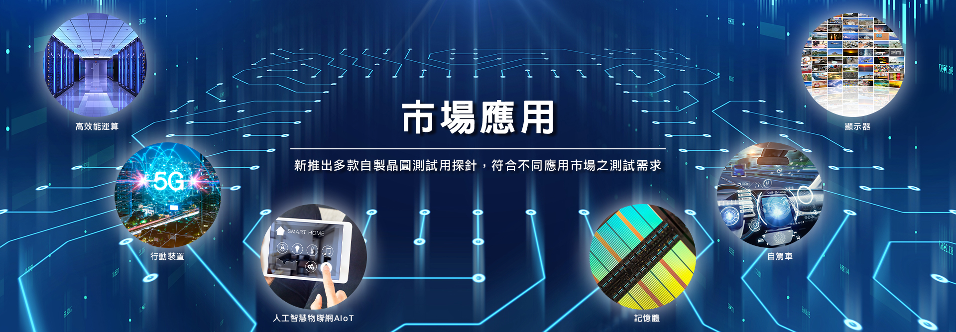 人工智慧(AI)結合物聯網(IoT)技術所收蒐且分析有效數據資訊的AIoT,將為人們帶來更便利的科技生活,為此,需佈署大量各項功能的感測器,例如溫度、壓力、聲波、影像辨識…等,亦得進行物與物之間的短距聯網傳輸,及針對小量資訊進行邊緣運算。CHPT推出符合無線通訊之WiFi、BLE晶片測試用的NS/BR系列探針卡;符合MCU晶片測試用的NS系列探針卡;以及符合CIS晶片測試用的MJ系列探針卡。