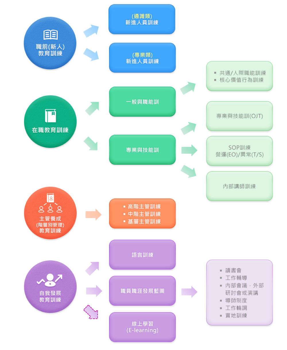 1. 順應公司經營策略與發展需要,強化專業職能與人文素養,以提升整體員工素質。